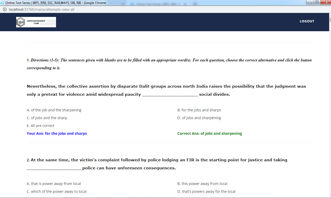 For good feedback, complaint or error, we will provide you 10 free test. Thanks from TestVidya Team. Click here for your valuable input. We are looking